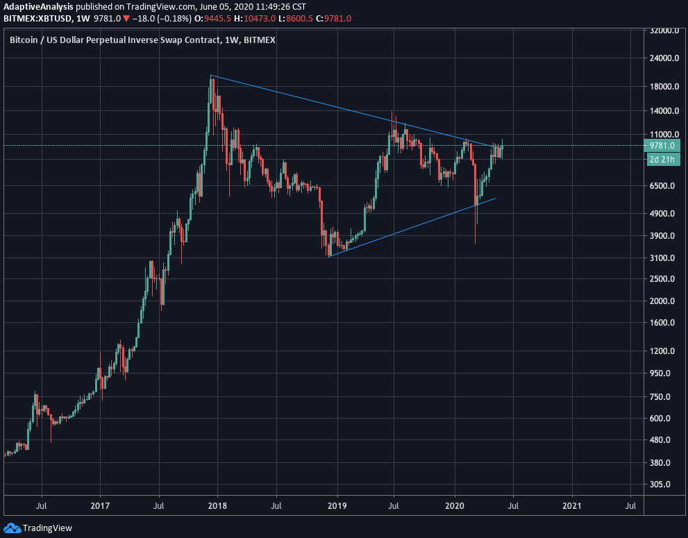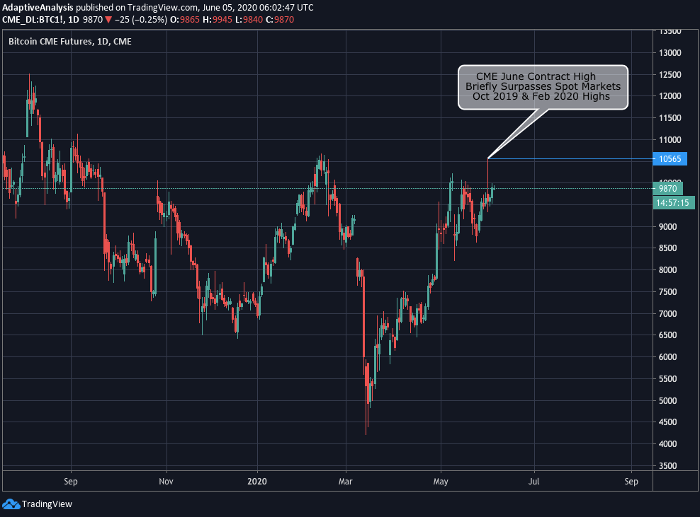 Price action has highlighted $10,550 as an important level. The highs of both October 2019 and February 2020 in the spot market were formed around this price and the recent selling pressure beyond this price has shown that traders are taking notice.