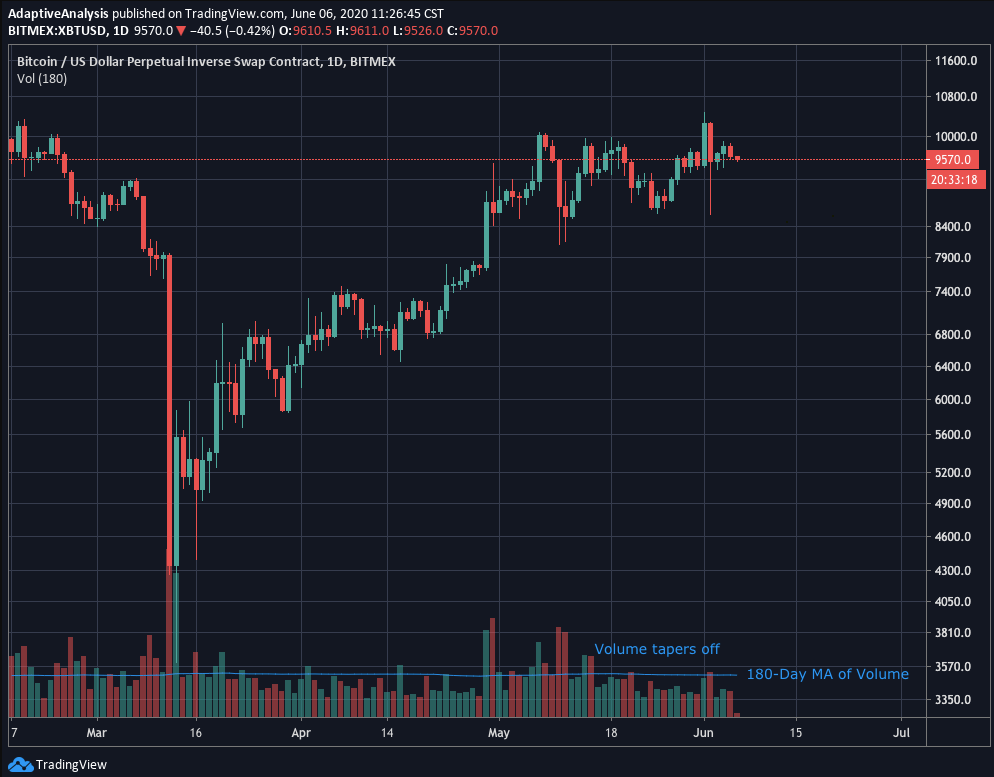 If the bullish expectations many hold for the Bitcoin market are to materialize, there needs to be sufficient buying pressure to surpass the sell walls beyond both $10,000 and $10,550. Furthermore, volume tapering off in the second half of May weakens the prospect of strong buying pressure coming in and pushing price above these levels.